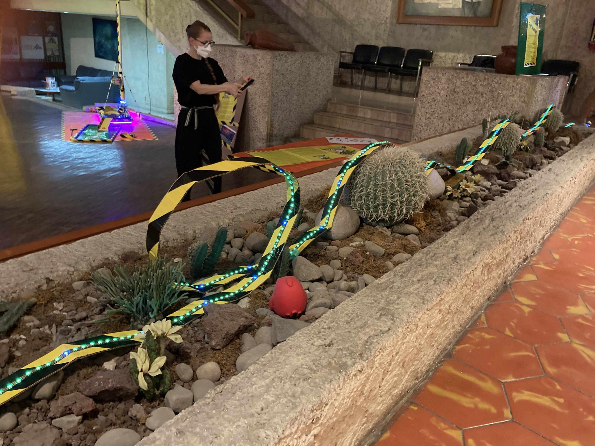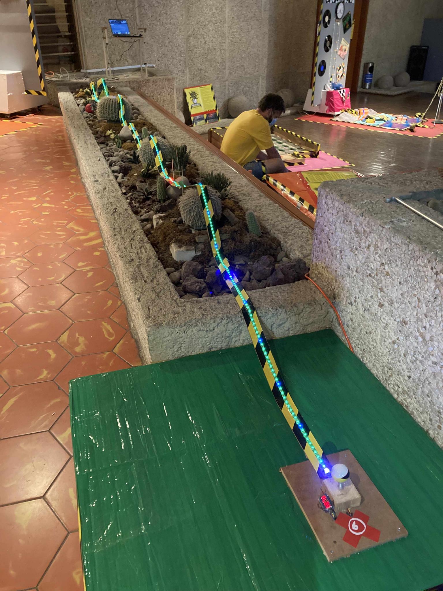 Inspiré par le Line Wobbler de Robin Baumgarten, Golf Wobbler est un mini-golf 1D joué sur une seule bande LED avec un club de golf.